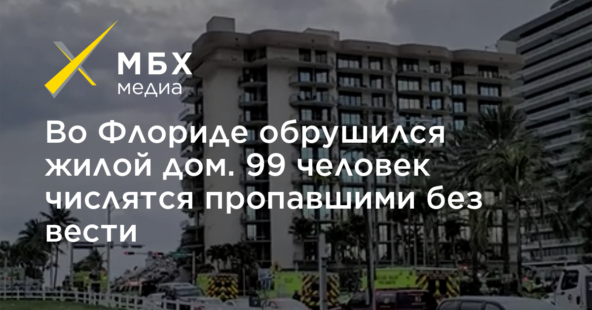 В городе Серфсайд у Майами, где в ночь на 24 частично обрушился 12-этажный жилой дом, 99 человек числятся пропавшими без вести, сообщает телеканал Fox.
