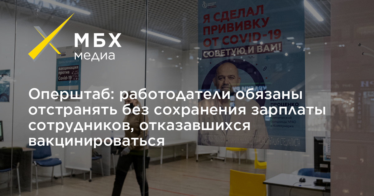 Оперштаб: работодатели обязаны отстранять без сохранения зарплаты сотрудников, отказавшихся вакцинироваться