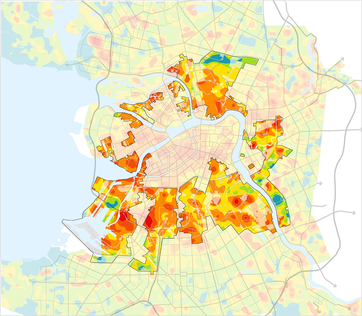 При этом эксперты говорят, что порядка 35 % территорий «серого пояса» потенциально подходят для редевелопмента, так как там не ведут деятельность предприятия. Больше всего таких участков в Московском, Калининском и Невском районах. «Урбаника» считает, что это основной городской резерв для проведения редевелопмента, однако его тормозят несколько факторов: проблемы с улично-дорожной сетью, общественным транспортом и экологией.