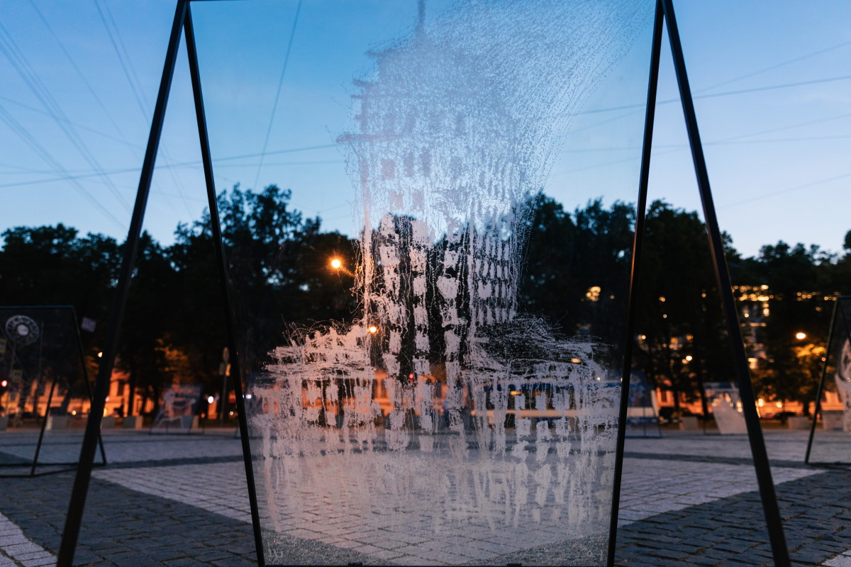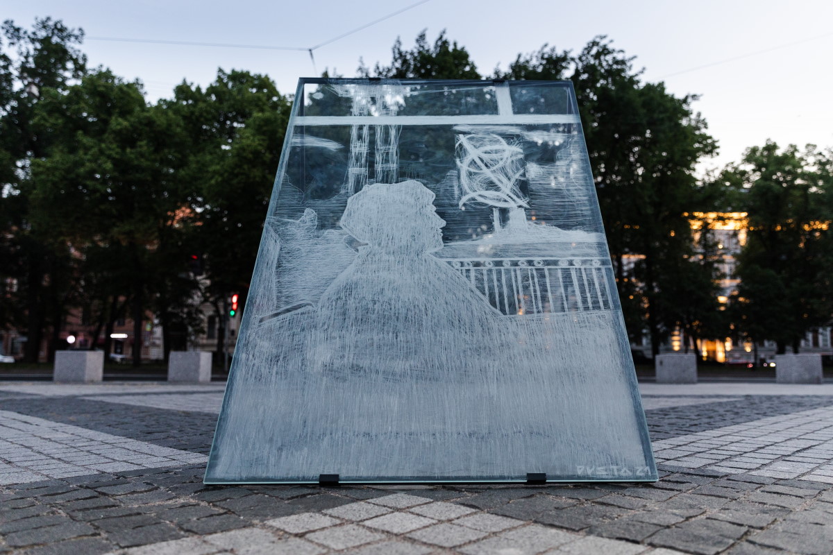 На площади у западного фасада ЦВЗ «Манеж» открыли уличную выставку из серии «Новые руины», исследующей нестандартные приемы в современном искусстве. Куратором экспозиции выступил художник Максим Има, выставку посвятили скретчингу — виду граффити, когда изображение выцарапывают на поверхности.