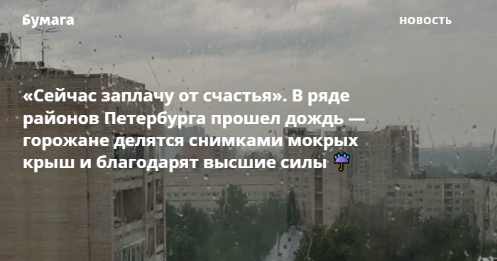 «Сейчас заплачу от счастья». В ряде районов Петербурга прошел дождь — горожане делятся снимками мокрых крыш и благодарят высшие силы ☔