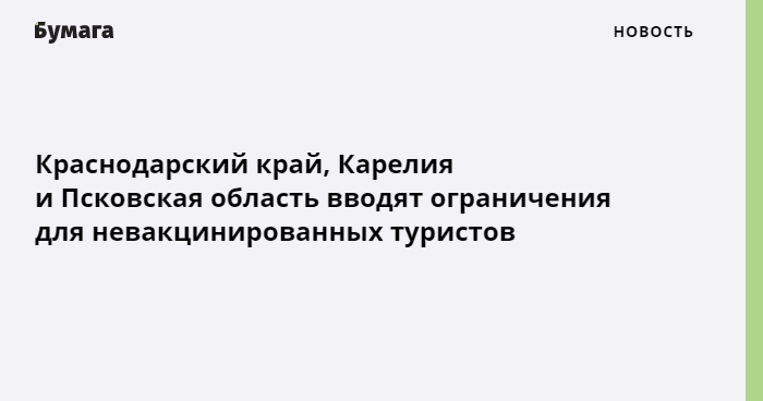 В Краснодарском крае, Карелии и Псковской области вводят ограничения для туристов, не прошедших вакцинацию от коронавируса, в связи с ростом заболеваемости.