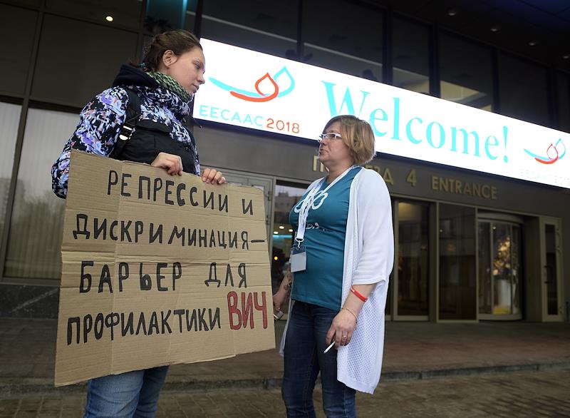 VI Конференция по ВИЧ/СПИДу в Восточной Европе и Центральной Азии прошла в Центре международной торговли. Девушка с плакатом во время пикета у входа в ЦМТ перед началом конференцииФото: Эмин Джафаров/Коммерсантъ Рациональный и доказательный подход к благотворительности полезен для российских реалий, но основная идея ответственности экономически преуспевающих стран перед бедными странами Глобального Юга пока мало касается нашей страны. Маловероятно и то, что угрозы будущим поколениям всего человечества придут из России. И еще менее вероятно, что благотворители из России сами решатся на масштабную помощь странам, где царит крайняя нищета.