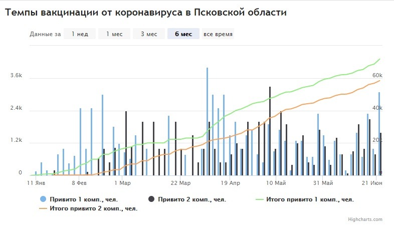 Первую прививку от коронавируса сделали 11,5 процента жителей Псковской области
