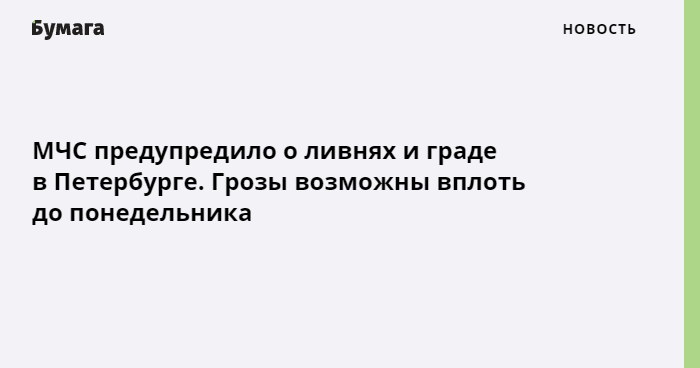 В Петербурге ожидают ливни и град