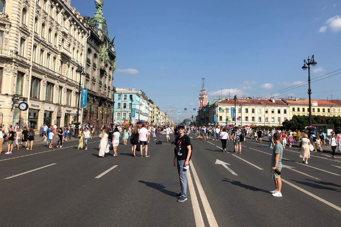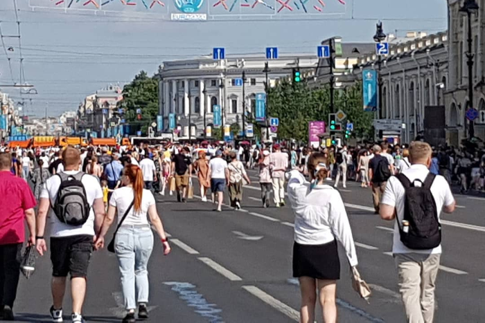 В центре Петербурга масштабные перекрытия из-за «Алых Парусов». Часть Невского проспекта от Дворцовой площади до Садовой улицы стала пешеходной из-за праздника. Ограничения движения по проспекту и другим перекрытым улицам снимут 26 июня в 5:00. Посмотрите, как горожане гуляют по перекрытой улице.
