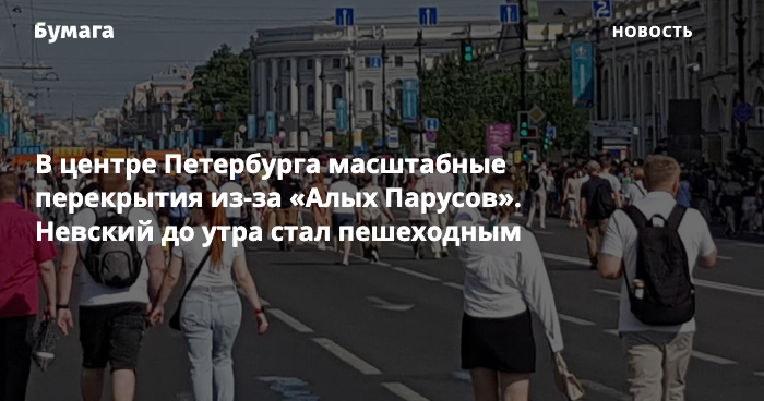Читайте, как в этом году пройдут «Алые паруса». «Бумага» рассказывает о программе праздника, ограничениях и запрете продажи алкоголя.
