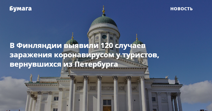 В Финляндии выявили 120 случаев заражения коронавирусом у туристов, вернувшихся из Петербурга