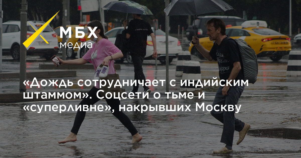 «Дождь сотрудничает с индийским штаммом». Соцсети о тьме и «суперливне», накрывших Москву