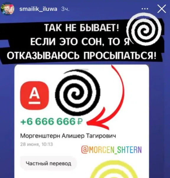 «Есть такой мальчик — зовут Илюха. И его жизнь стоит 160 млн рублей […] На моем канале 10 млн подписчиков. 160 млн рублей стоит жизнь, на меня подписаны 10 млн. Каждому надо скинуть по 16 рублей», — сказал Моргенштерн.