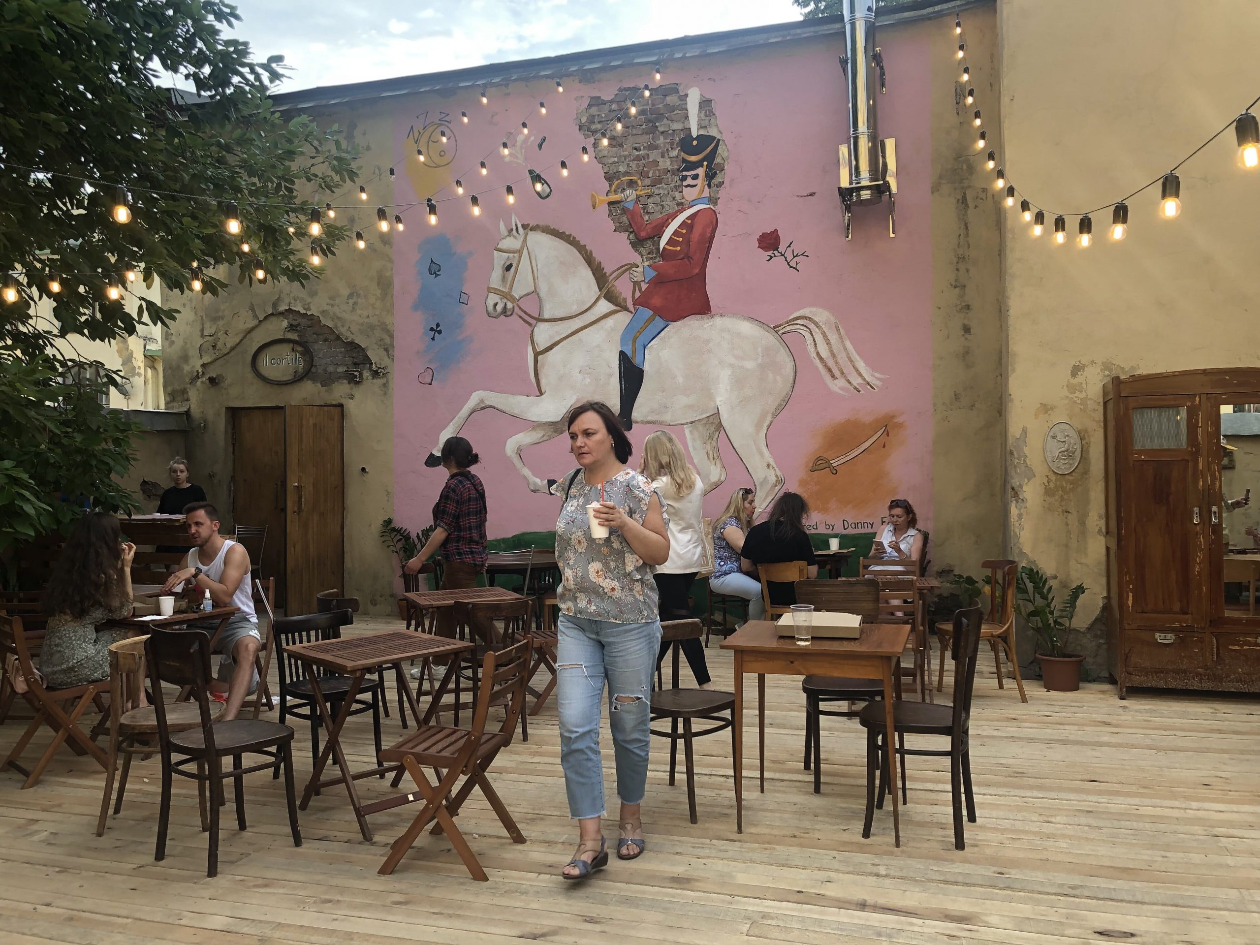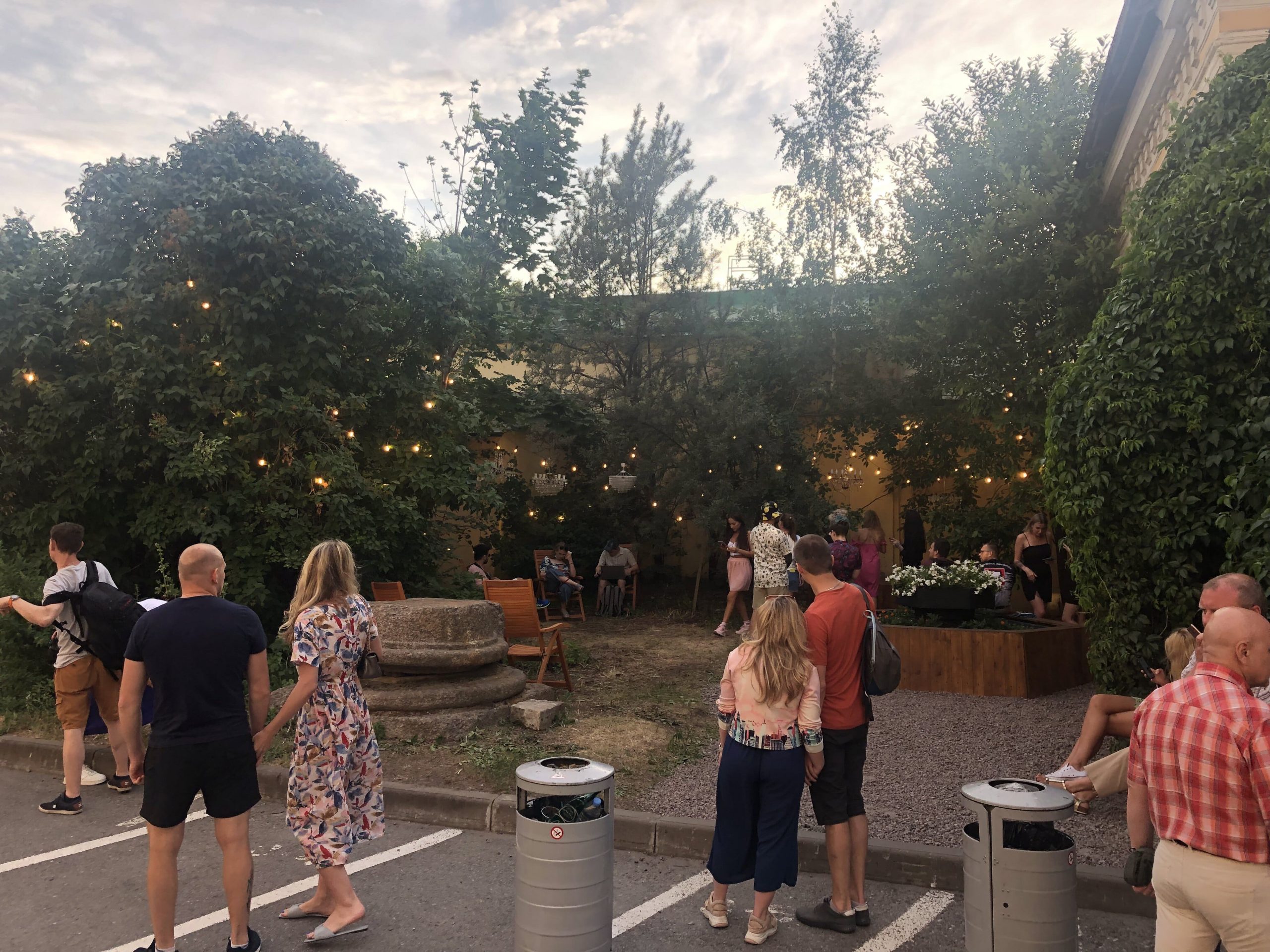 — «Двор Гостинки» — новое пространство в центре города. На данный момент всего 3–4 локации и людей больше, чем инфраструктуры. Но есть пара хороших мест для фотосессий.