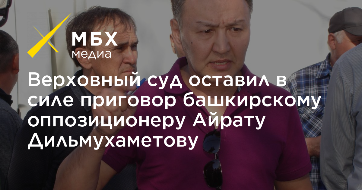 Верховный суд оставил в силе приговор башкирскому оппозиционному политику Айрату Дильмухаметову, осужденному на девять лет колонии строгого режима по делам о призывах к экстремизму, сепаратизму и терроризму. Об этом «Урал. МБХ медиа» сообщил адвокат Алексей Захаров.