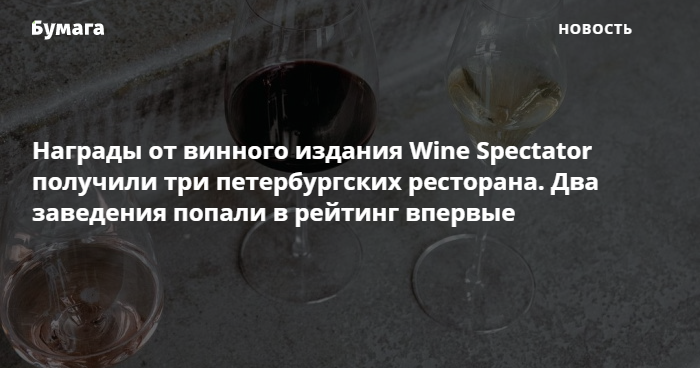 Награды от винного издания Wine Spectator получили три петербургских ресторана. «Бумага»