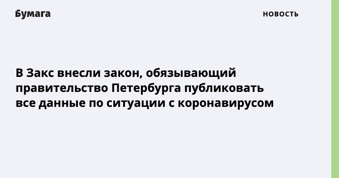 В Закс внесли закон, обязывающий правительство Петербурга публиковать все данные по ситуации с коронавирусом