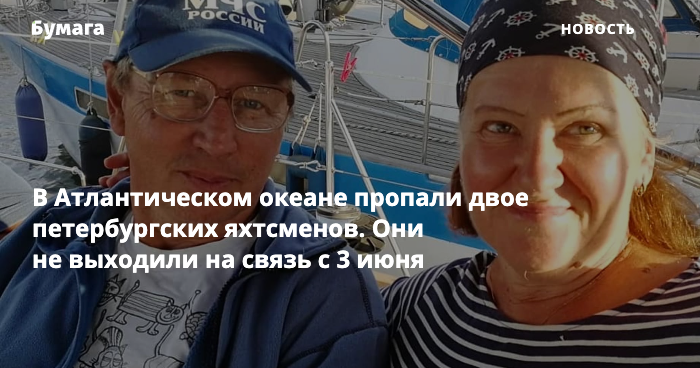 Петербургские яхтсмены Олег Гирсон и Елена Соколова пропали во время перехода с Канарских островов в сторону острова Мадейра — по словам родных, они не выходят на связь с 3 июня. Об этом сообщает «РБК Петербург».