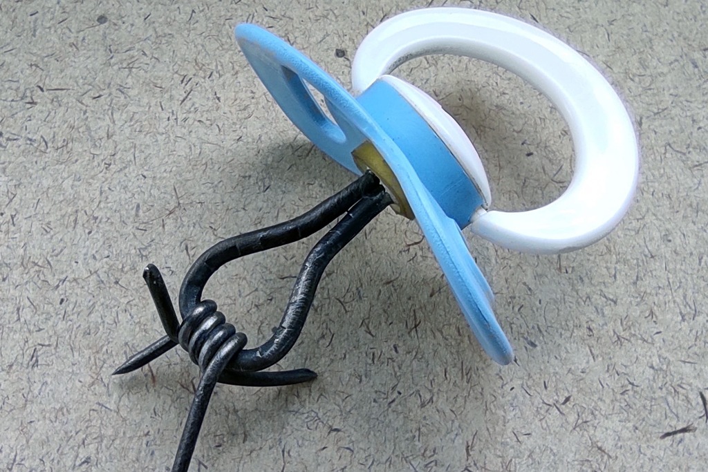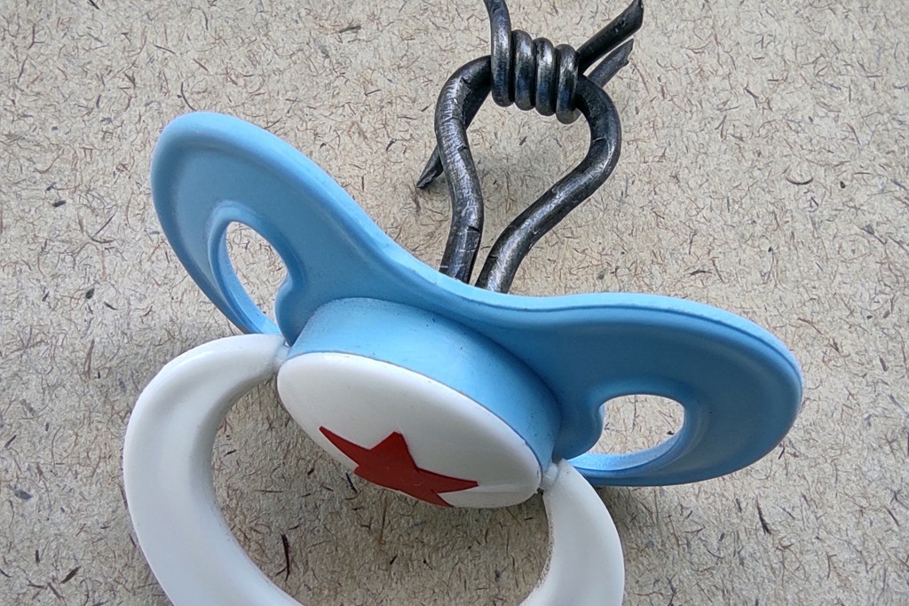 Слонов открыл онлайн-магазин в инстаграме, где можно приобрести изделия из коллекции художника GULAG TOYS. Детская пустышка из резины, пластика и колючей проволоки с красной пятиконечной звездой обойдется в 3 тыс. рублей.