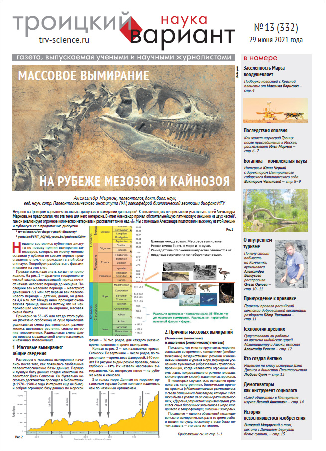 ТрВ № 13 (332) за 2021 г.: Массовое вымирание на рубеже мезозоя и кайнозоя