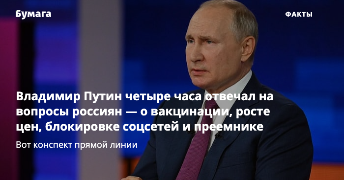 Владимир Путин четыре часа отвечал на вопросы россиян — о вакцинации, росте цен, блокировке соцсетей и преемнике