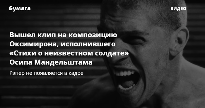На канале рэпера Мирона Федорова (Оксимирона) опубликован клип на композицию «Стихи о неизвестном солдате», созданную к 130-летию со дня рождения поэта Осипа Мандельштама.