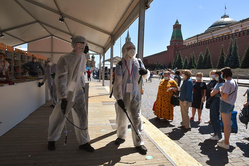 Сотрудники санитарно-эпидемиологической службы во время дезинфекции площадок ежегодного книжного фестиваля «Красная площадь»Фото: Александр Миридонов / Коммерсантъ 4. Ради принудительной вакцинации создали специальный отряд «надзирателей» из МФЦ. «У меня новость для москвичей, жаль, что не очень позитивная. <…> Сегодня вечером заезжала в МФЦ, без записи. Плевое дело на пять минут. Талон не дали, пошла к руководителю отделения, добилась записи, мотивируя, что людей вообще не было, зал пустой. Села к оператору, спросила, почему так мало окошек работает. Ответ: «Кто-то в отпуске, кто-то уволился(из-за насильственной пропаганды вакцинации), кто-то болеет, а КТО-ТО НА НОВОЙ ПРОГРАММЕ». Спросила, что за программа, так как не очень поняла. Ответ не то что удивил, ответ в жару по ощущениям как холодный душ: “Часть сотрудников всех МФЦ по всей Москве теперь работает по программе… в городских поликлиниках. В прививочных кабинетах сидят, как надзиратели, отслеживают, чтобы пришедший прививаться был тот, кто в паспорте (как будто найдется дурак, который будет прививаться за кого?), и, самое интересное❗️, следят, чтобы вакцину действительно влили человеку?♂”. Так что в поликлиниках теперь собакинские надзиратели в прививочном кабинете работают. Не буду писать, в каком МФЦ была конкретно, дабы не навредить этому человеку. <…> Как-то так, на ночь глядя?♀// #обыкновенныйфашизм #лоботомия #PandemicTreaty #TheGreatConvergence @VseWeda».