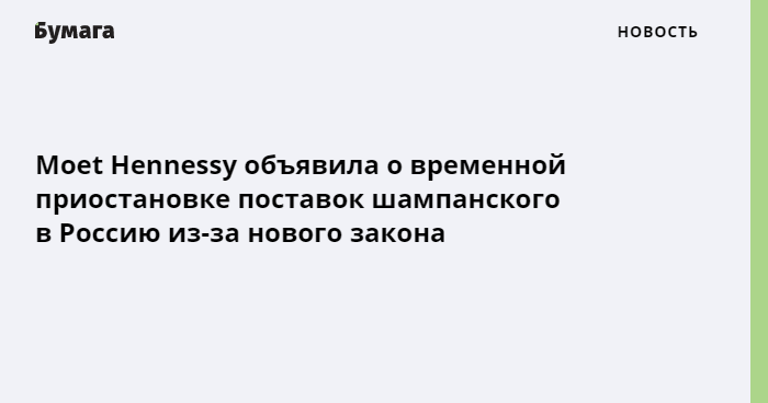 Диструбиционное подразделение производителя премиальных алкогольных напитков Moet Hennessy объявило партнерам, что компания на неопределенный срок приостанавливает поставки шампанского в Россию. Об этом сообщили источники «РБК» и «Ведомостей», письмо опубликовала в фейсбуке сотрудница сети Vinicom Ольга Соколова.