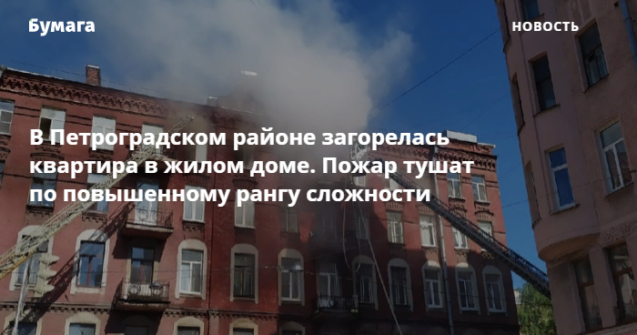 На Пионерской улице, 37 в Петроградском районе произошел пожар в жилом доме. Об этом сообщает ГУ МЧС по Петербургу.