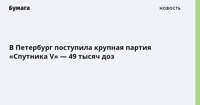 В Петербург поступила новая партия вакцины «Гам-КОВИД-Вак» («Спутника V») — 49 200 доз. Об этом сообщается на сайте Смольного.