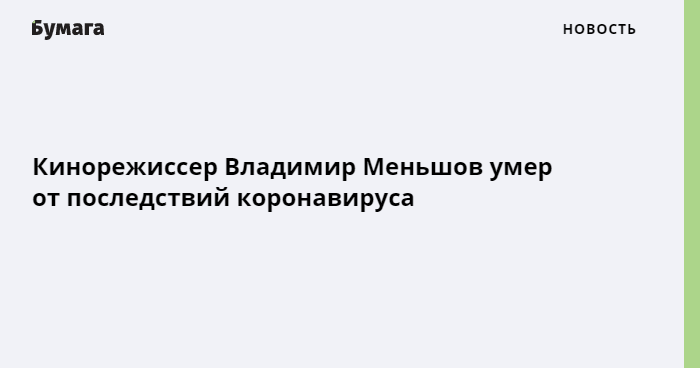 Режиссер, актер и сценарист Владимир Меньшов умер от последствий коронавируса на 82-м году жизни. Об этом пишет «Мосфильм».
