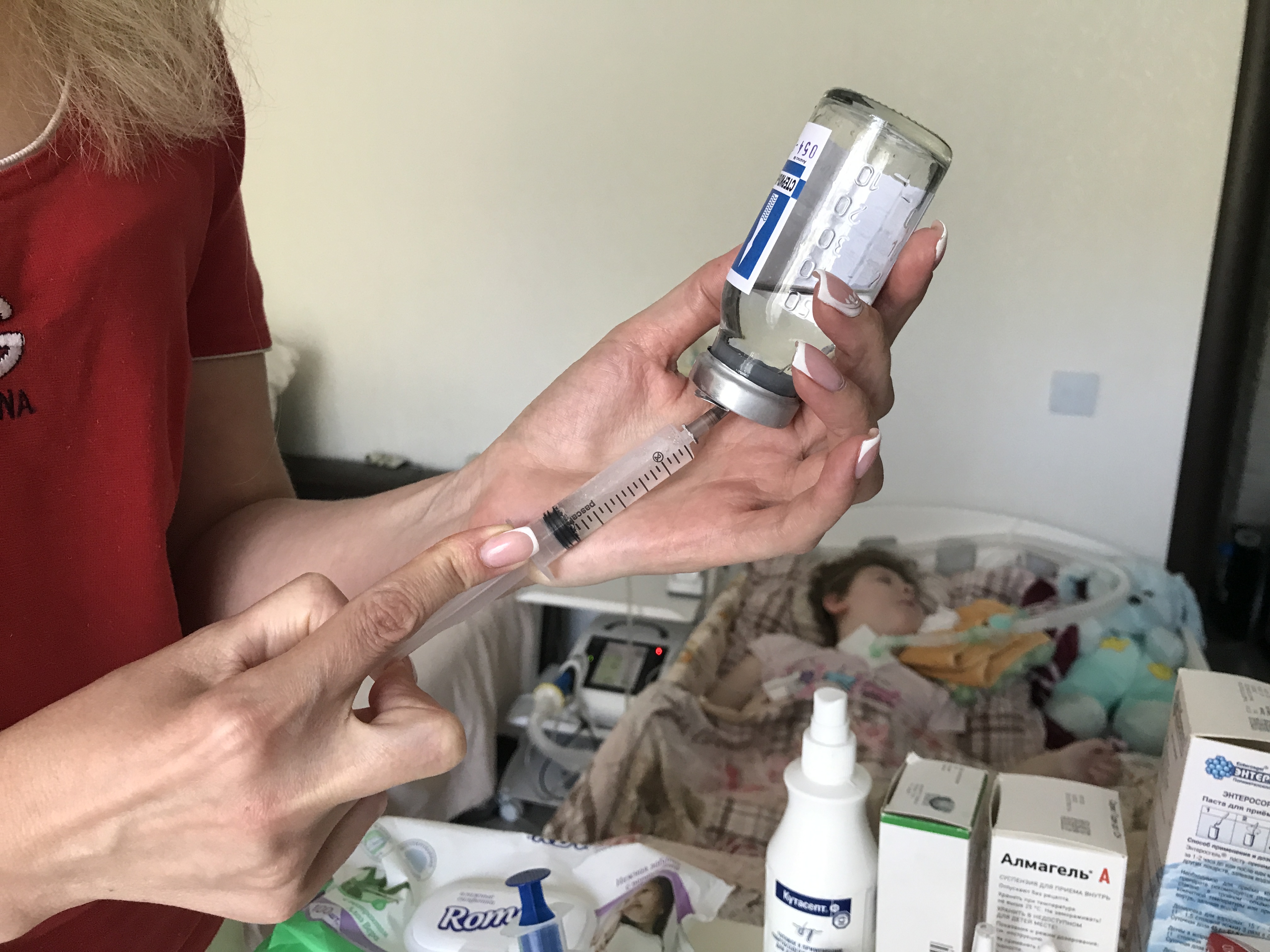 – Рано утром, в лучшем случае в шесть утра, у нас начало противосудорожной терапии. Потом ингаляции делаем, их часто надо делать, чтобы не было застоя в легких, сейчас делаем с антибиотиками, чтобы прогнать синегнойную палочку. Перевязки трахеостомы, Амбу-гимнастика (мешок Амбу – механическое ручное устройство для выполнения временной искусственной вентиляции лёгких. – СР), – рассказывает Яковлева.