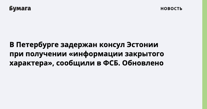 В Петербурге сотрудники ФСБ задержали консула Эстонии Марта Лятте, когда он пытался получить от россиянина «информацию закрытого характера». Об этом сообщает «Интерфакс» со ссылкой на центр общественных связей ФСБ.