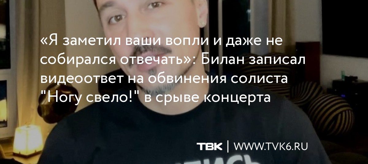 «Я заметил ваши вопли и даже не собирался отвечать»: Билан записал видеоответ на обвинения солиста «Ногу свело!» в срыве концерта