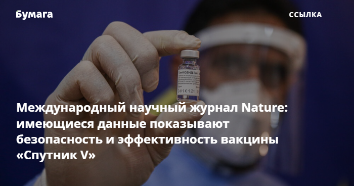 Nature — о безопасности и эффективности «Спутника V»