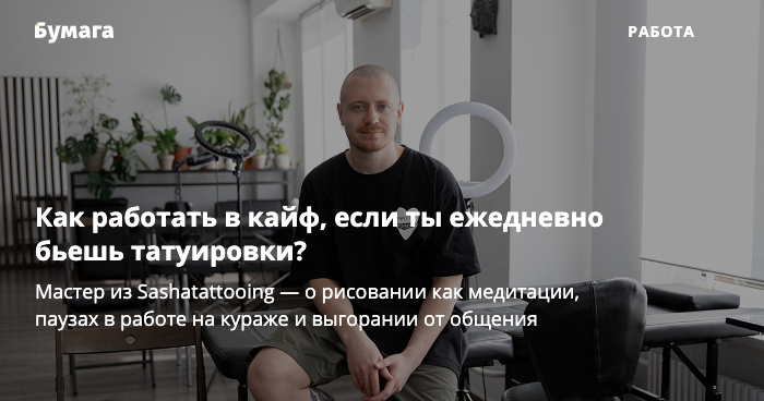 «Бумага» поговорила с Михаилом о том, почему нанесение татуировки на кожу для него сродни медитации, что в работе дается ему сложнее всего и как плавание и время наедине с собой спасают от усталости.