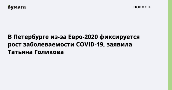 В Петербурге из-за проведения Евро-2020 фиксируется рост заболеваемости COVID-19, сообщила вице-премьер и глава оперативного штаба по борьбе с распространением коронавируса в России Татьяна Голикова.