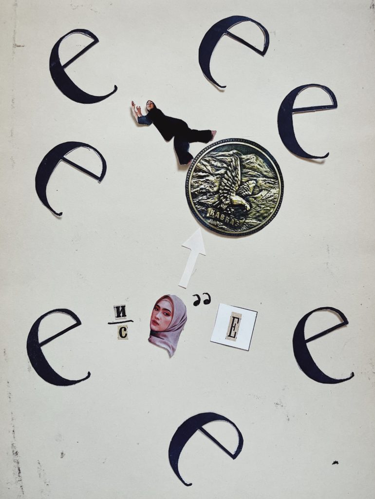 Четвертый коллаж-ребус — женщина, бегущая с Кавказа от насилия в семье