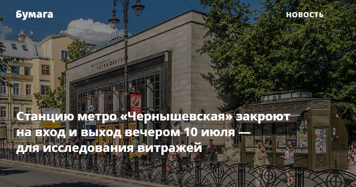 «Чернышевскую» закроют вечером 10 июля