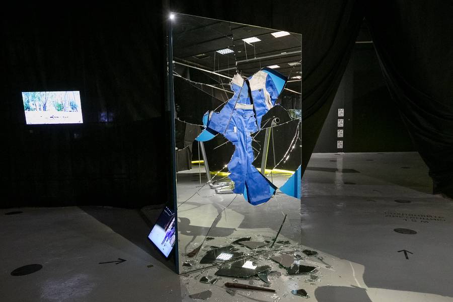 Проект оказался довольно сложен в исполнении, и мне очень помогала моя кураторка из «Каскада», она помогла довести работу до конца, четче сформулировать посыл. Понадобился примерно месяц, чтобы добиться предельной четкости образа. Спасибо рабочим Музея Москвы, которые конструировали все опоры. Разбивать зеркало вообще было довольно опасно: летели осколки, ключ застревал. Была идея разбить зеркало прямо на выставке, но решили поберечь здоровье гостей, и от этого перформанса пришлось отказаться.