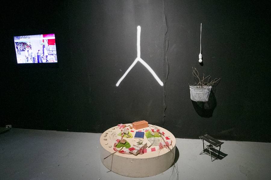 Первая часть инсталляции — видеоарт: я провожу обряд, пускаю венок из проволоки по озеру, а он тонет, символизируя невозможность овладеть тайным знанием. Вторая часть — клетка как символ несвободы современной женщины. Клетка опирается на угол, в котором и проигрывается видео обряда.