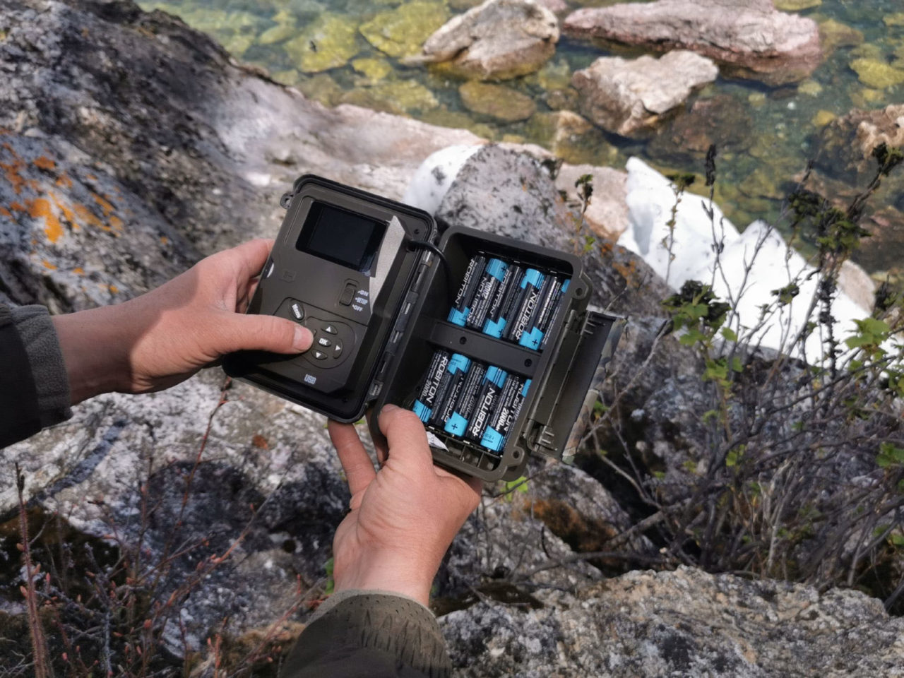 Когда коптер возвращается к Андрею, он идет проверять фотоловушки, развешанные на деревьях по берегу. У него их здесь восемь штук, все направлены на озеро, туда, где появляются нерпы. Камера срабатывает каждые три часа, так что через неделю в распоряжении Андрея оказываются десятки фотографий. Разуваев установил фотоловушки, еще когда на озере лежал лед и нерпы тут не было. Это тоже метод визуального учета, который поможет понять, когда здесь впервые в сезоне появляется нерпа и сколько ее.