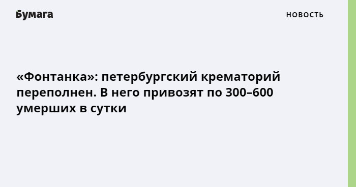«Фонтанка»: петербургский крематорий переполнен. Туда привозят по 300–600 умерших в сутки