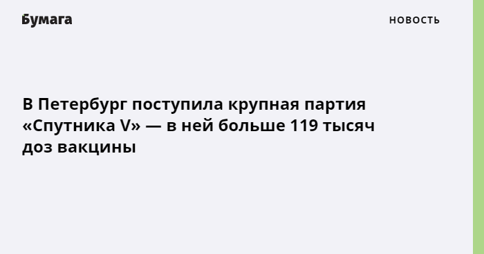 В Петербург доставили 119 400 комплектов доз «Спутника». Для сравнения: в другой крупной партии, поступившей в город 5 июля, было 49 тысяч доз.