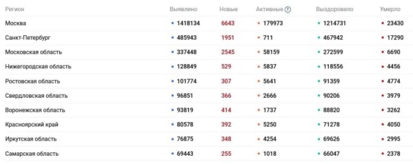 Впервые эту аномалию мы увидели в Дагестане в прошлом году. Когда внезапно количество официально зарегистрированных случаев коронавируса начинает так сильно отставать от числа выздоравливающих, в результате получилось, что за день заболевает гораздо меньше людей, чем выздоравливает и умирает. Может дойти до того, что в официальной статистике активных новых случаев (это те, кто болеет прямо сейчас) вообще не останется.