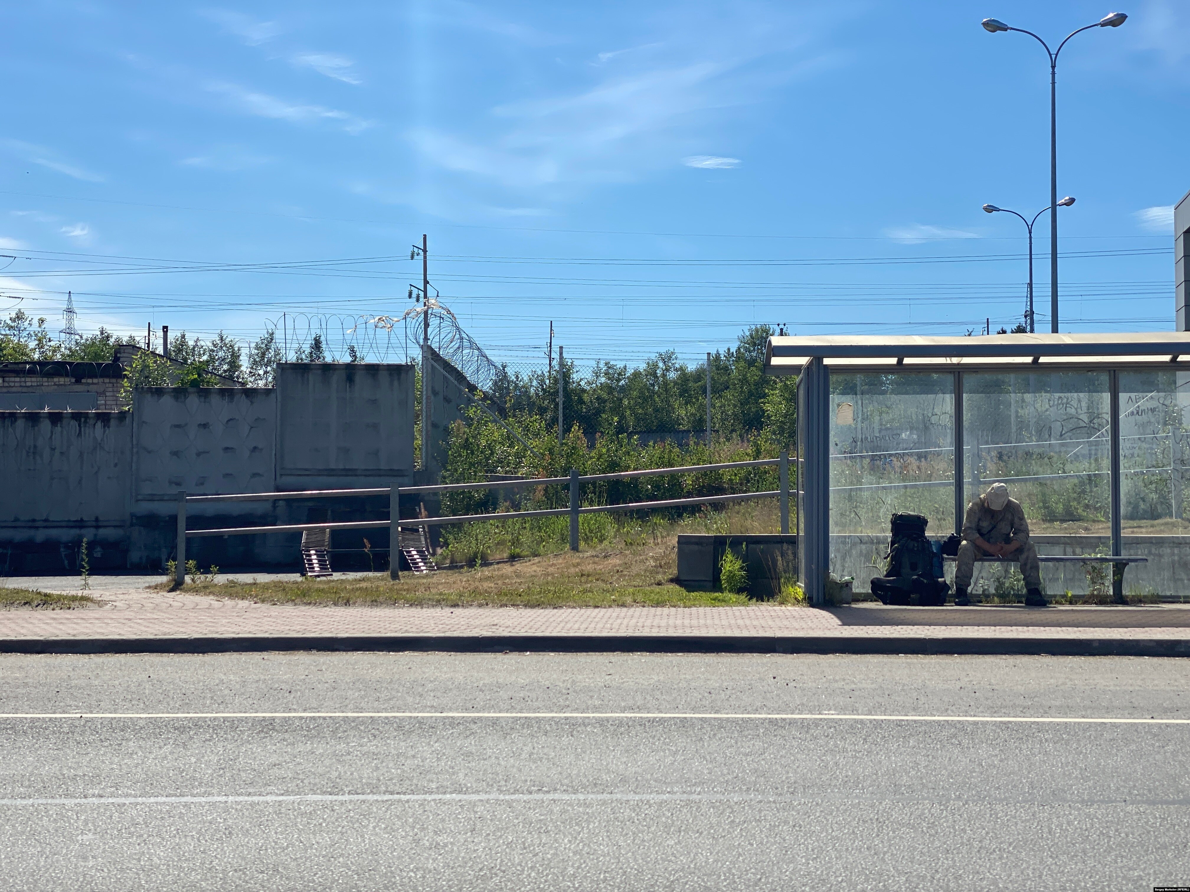 Андрей Шарашкин – невысокий коренастый мужчина 55 лет с длинной седой бородой, в военной форме цвета хаки и такой же шляпе – пришел в Петрозаводск утром 2 июля. Он сидел на остановке на въезде в город и курил. За последние восемь часов Андрей прошел 33 километра, еще семь проехал автостопом.