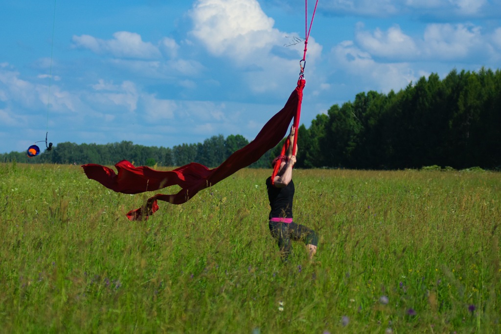 Гимнастка приехала из Москвы в Новосибирск, чтобы выполнить номер на полотнах на большой высоте, взлетев на параплане с аэродрома Бердск Южный.