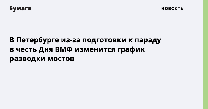 В Петербурге из-за подготовки к параду в честь Дня ВМФ изменится график разводки мостов