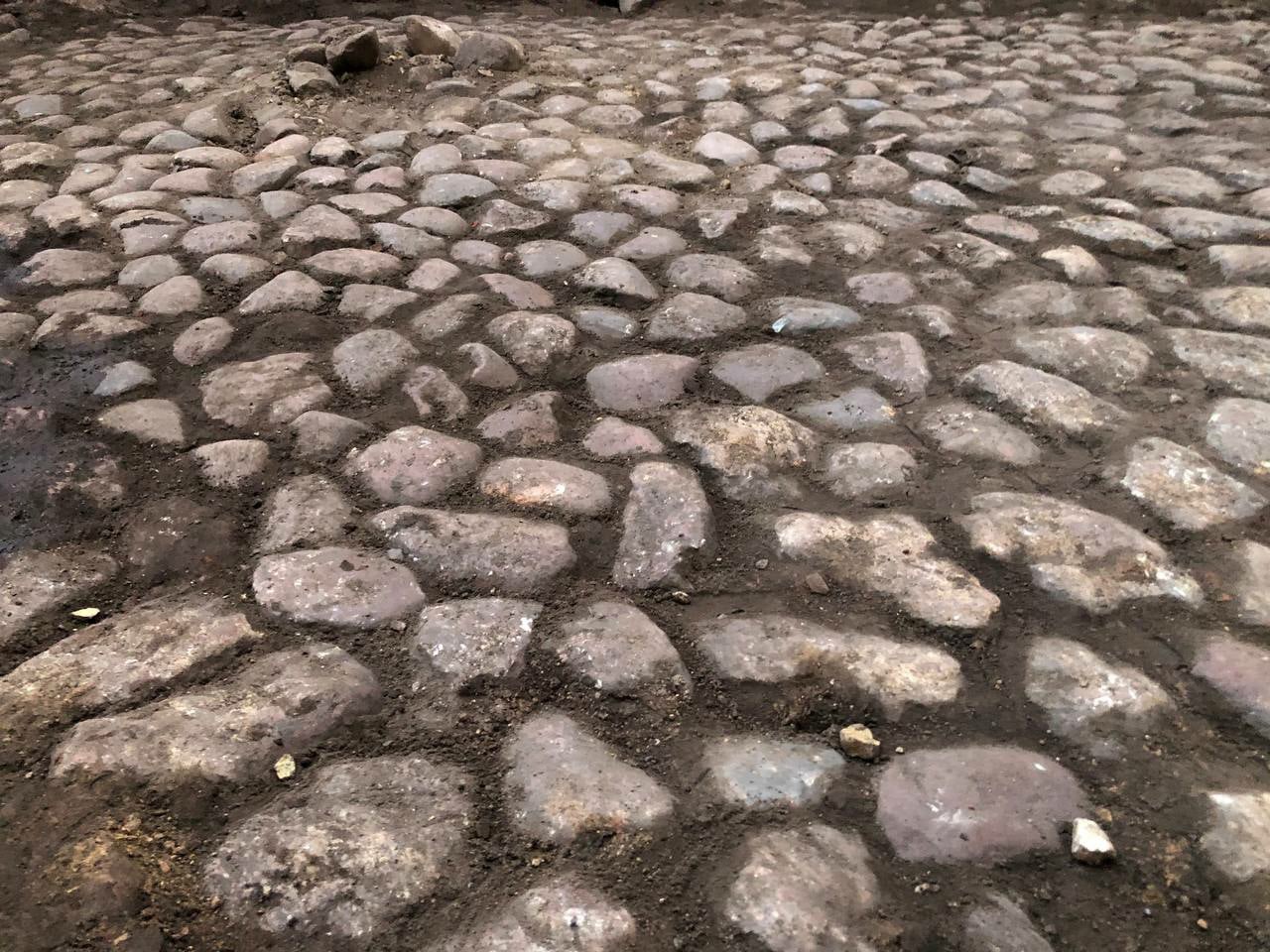 Градозащитники вручную расчистили часть мощения площадью 3,5 на 5 метров. Как сказала «Бумаге» представительница ВООПИиК Анна Капитонова, если муниципалитет пойдет навстречу, будет возможность сохранить мощение. При этом градозащитница отметила, что это уникальная находка.