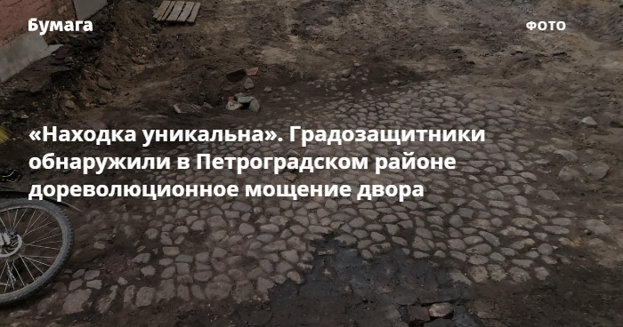 В Петроградском районе Петербурга обнаружили сохранившееся историческое булыжное мощение двора. Об этом сообщило городское отделение ВООПИиК.