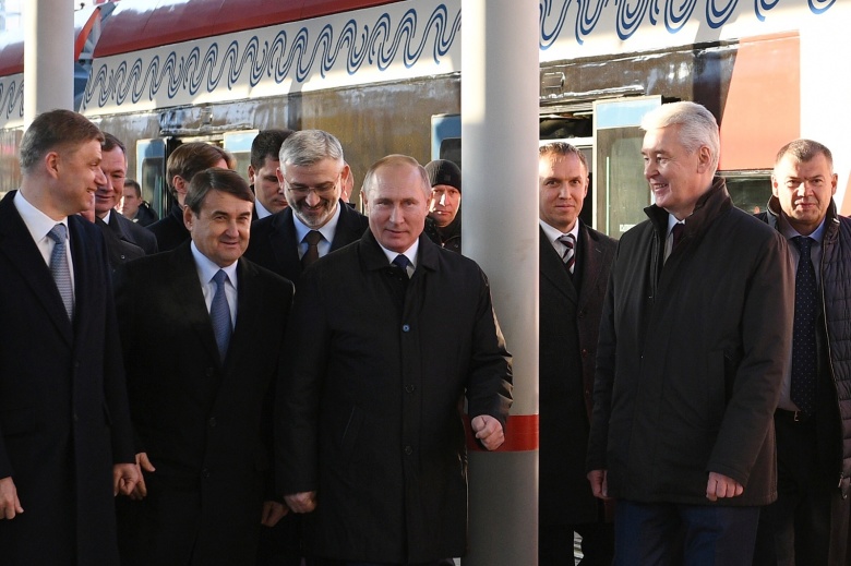 Владимир Путин с Сергеем Собяниным и Маратом Хуснуллиным. Фото: stroi.mos.ru