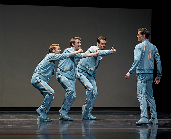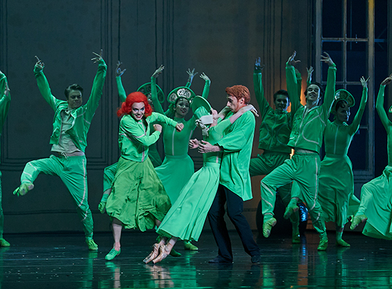 © Александр Нефф «Поцелуй феи» В целом новый оперно-балетный спектакль театра можно отнести к полуудачам. Эстетский «Поцелуй феи» получился довольно внятным по идее и воплощению. Занимательная «Байка», при некоторой тривиальности хореографического рисунка и слишком однотипных появлениях пары Стравинский — Дягилев, позабавила и развлекла; вокальный квартет теноров и басов звучал вполне прилично, хотя слов было не разобрать, спасали только титры. Наименее убедительной получилась «Мавра»: диссонанс музыки, текста и блеклого визуального ряда оказался роковым, а постановка — совсем не смешной.
