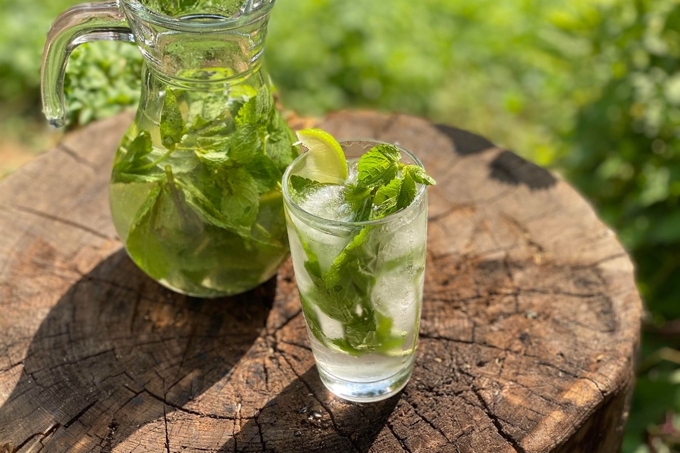 Это самое простое и освежающее сочетание: достаточно просто взять лайм (или лимон, если лайма нет) и пучок мяты. Лайм нарежьте ломтиками, а мяту слегка разомните в руках, чтобы вкус и аромат быстрее насытили напиток, затем залейте все это обычной водой в кувшине или бутылке с широким горлышком, поставьте в холодильник на пару часов и готово. Можно еще кинуть несколько ломтиков тонко нарезанного имбиря, а если хотите подсластить, добавьте сахарного сиропа — еще лучше, чем обычный рафинированный, подойдет темный тростниковый — или меда, предварительно разведенного в теплой воде.